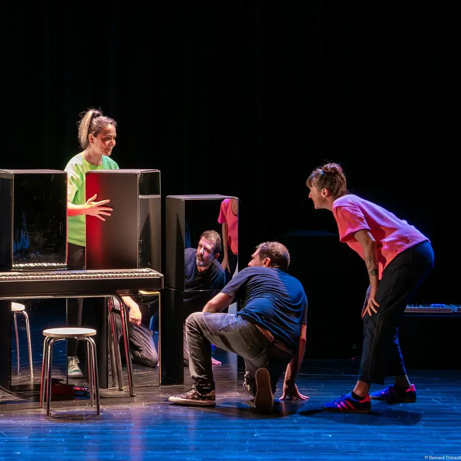 Sur scène, deux chanteuses jouent avec les mots et les émotions, sous le regard amusé d’un grand frère à la fois discret et protecteur. Le piano, fil conducteur du spectacle, dialogue avec un univers sonore actuel dans une scénographie ludique et inventive. Des témoignages d’enfants viennent ponctuer certaines chansons. Ils apportent une touche de vérité et d’humour, comme des confidences glissées à l’oreille.