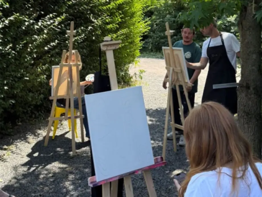 - Jour 2 : ateliers de peinture guidés le matin et l’après-midi, avec liberté d’expression, échanges entre participants et exploration de nouvelles techniques. Déjeuner convivial inclus et temps libre pour profiter du cadre naturel du domaine.