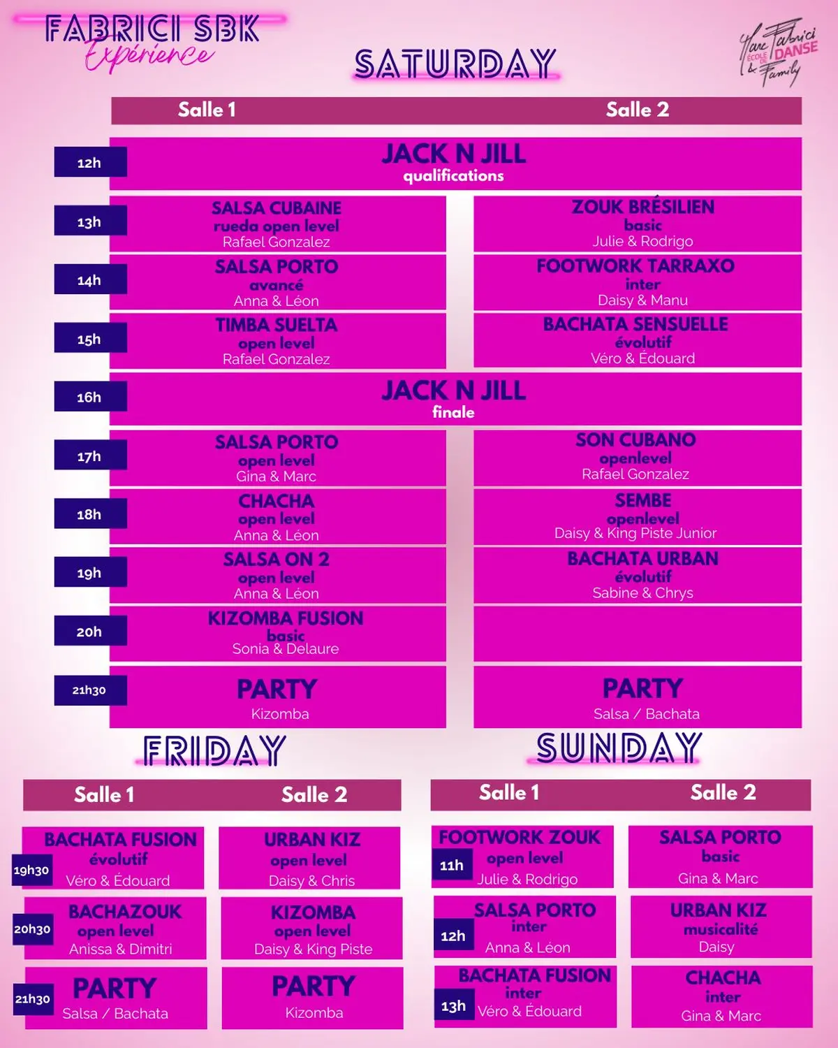 Du 17 au 19 avril 2026, l’École de Danse Marc Fabrici & Family t’invite à vivre un moment unique autour de la Salsa, de la Bachata et de la Kizomba : Fabrici SBK Expérience.