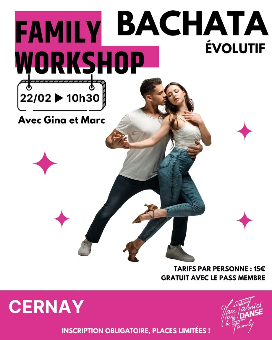 L’École de Danse Marc Fabrici & Family propose un Family Workshop Bachata de niveau évolutif, destiné aux danseur·ses souhaitant consolider leurs bases et approfondir leur pratique dans une ambiance conviviale et bienveillante.