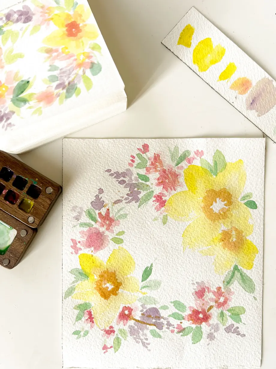 Initiation à l'aquarelle - Couronne de fleurs de printemps