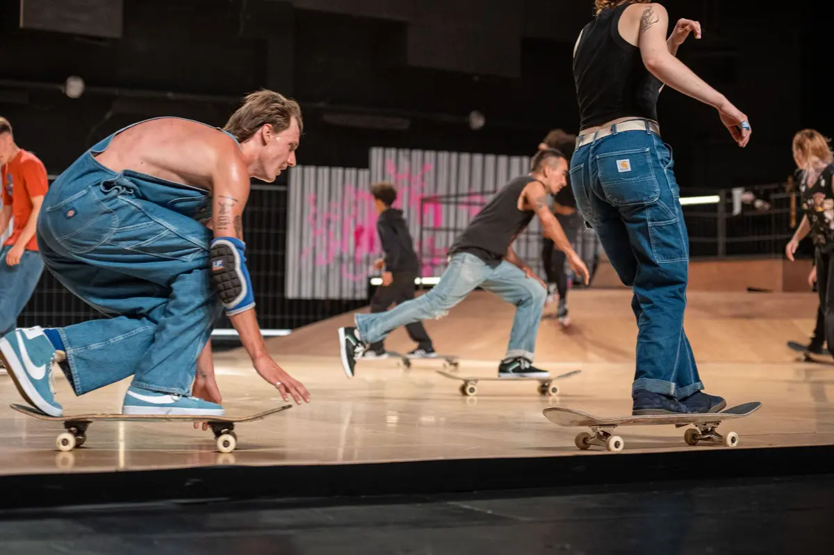 Les skateur·euses qui participeront au spectacle patineront dans le décor en guise d’ouverture du spectacle. Un bon niveau en skate est demandé pour éviter les accidents.