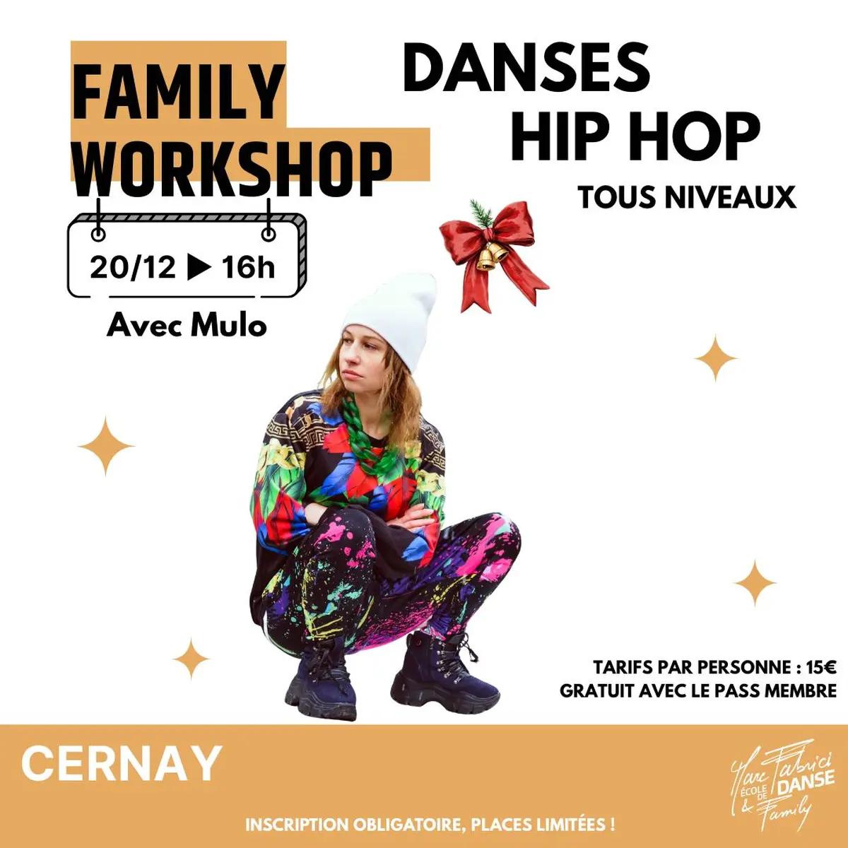 Le Family Workshop est conçu pour offrir une approche accessible, dynamique et ludique des danses urbaines, tout en plongeant dans une ambiance de Noël chaleureuse et rythmée.