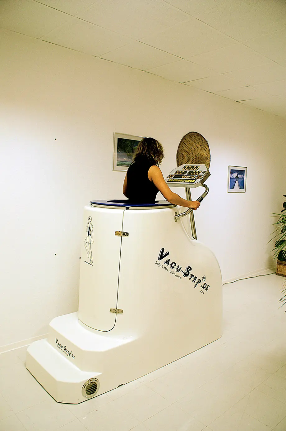 Autre nouveaut? disponible cette fois chez Point Soleil : le Vacu Step. Cet appareil, plut?t imposant, s?attaque aux graisses les plus rebelles qui se trouvent g?n?ralement au ventre, aux jambes, aux hanches et aux fesses, par une combinaison de ph?nom?ne de vide d?air et d?exercice physique. Le r?sultat : les zones ? probl?mes sont mieux irrigu?es, les vaisseaux sanguins dilat?s et ainsi, les graisses plus facilement consomm?es et br?l?es par le corps. Si sur la forme, le Vacu Step ressemble ? un v?lo elliptique enferm? dans un caisson, sur le fond, il n?cessite beaucoup moins d?efforts physiques. Pour obtenir un r?sultat optimal, un travail de 4 ? 6 semaines est recommand?, ? raison de 1 ? 2 s?ances par semaine.