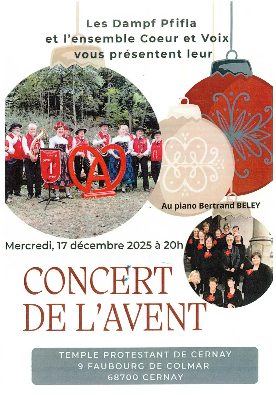 Rendez-vous le mercredi, 17 décembre à 20h au Temple Protestant de Cernay.
