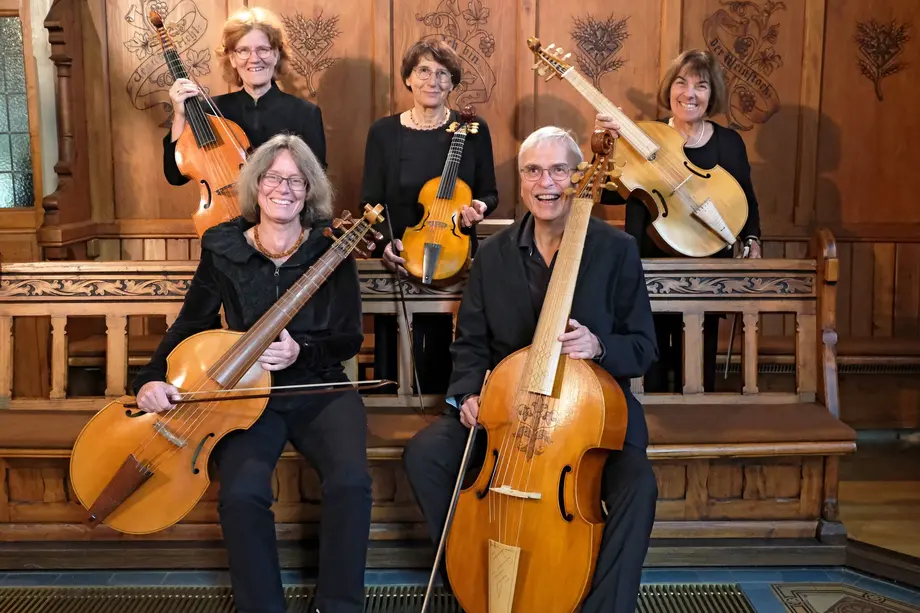 La viole de gambe soprano, alto, ténor et basse est jouée par : Hélène Godefroy, Ewa Staszewska, Simone Woll et HansChris Dreßen.