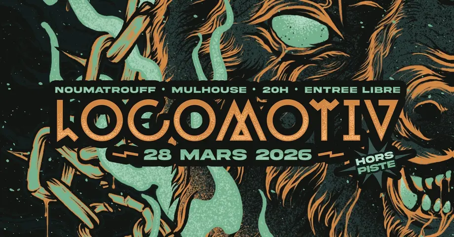 Locomotiv Hors Pistes investit Le Noumatrouff de Mulhouse le samedi 28 mars 2026 à 20h pour une soirée metal hardcore explosive. Quatre groupes se succèdent dans ce format intimiste : Six Grammes Eight, Downfall, Spit Your Hate et Grand Tetras Orchestra. L'entrée est libre pour cette édition concentrée dans le club mulhousien.