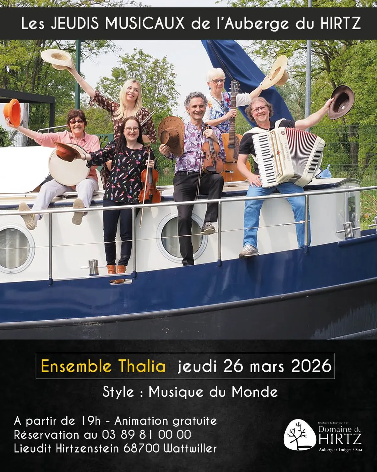 Chaque jeudi à 19h00, l'Auberge du Hirtz vous propose les « Jeudis Musicaux de l’Auberge ». Le concept est simple, installez-vous à votre table et profitez d’une ambiance musicale totalement gratuite tout en dégustant vos plats. La programmation change tous les mois afin que chacun puisse apprécier un style musical différent.