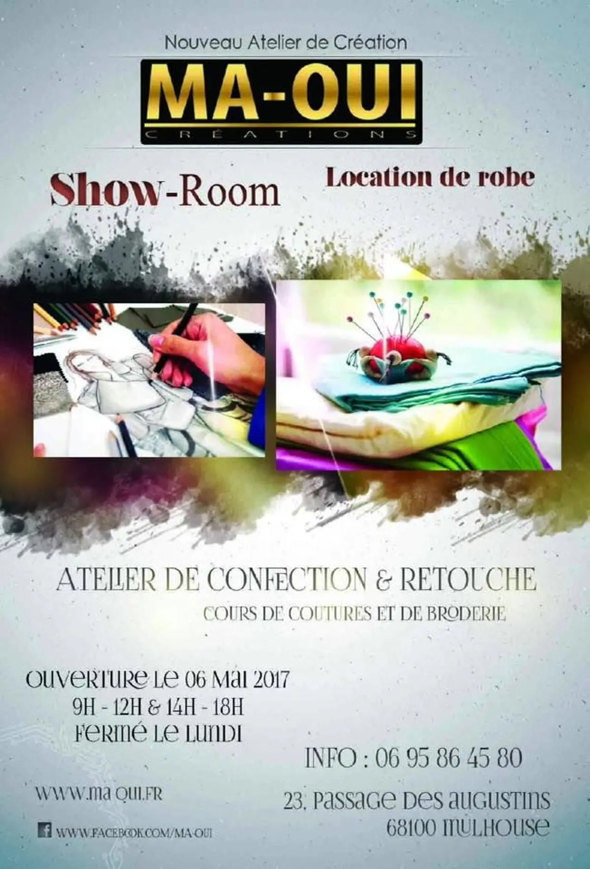 La marque Ma-oui créations est une maison de couture qui crée des tenues sur mesures, confectionnant des robes de soirées, de mariées de cocktails, et tous types de vêtements, (saris, caftans).