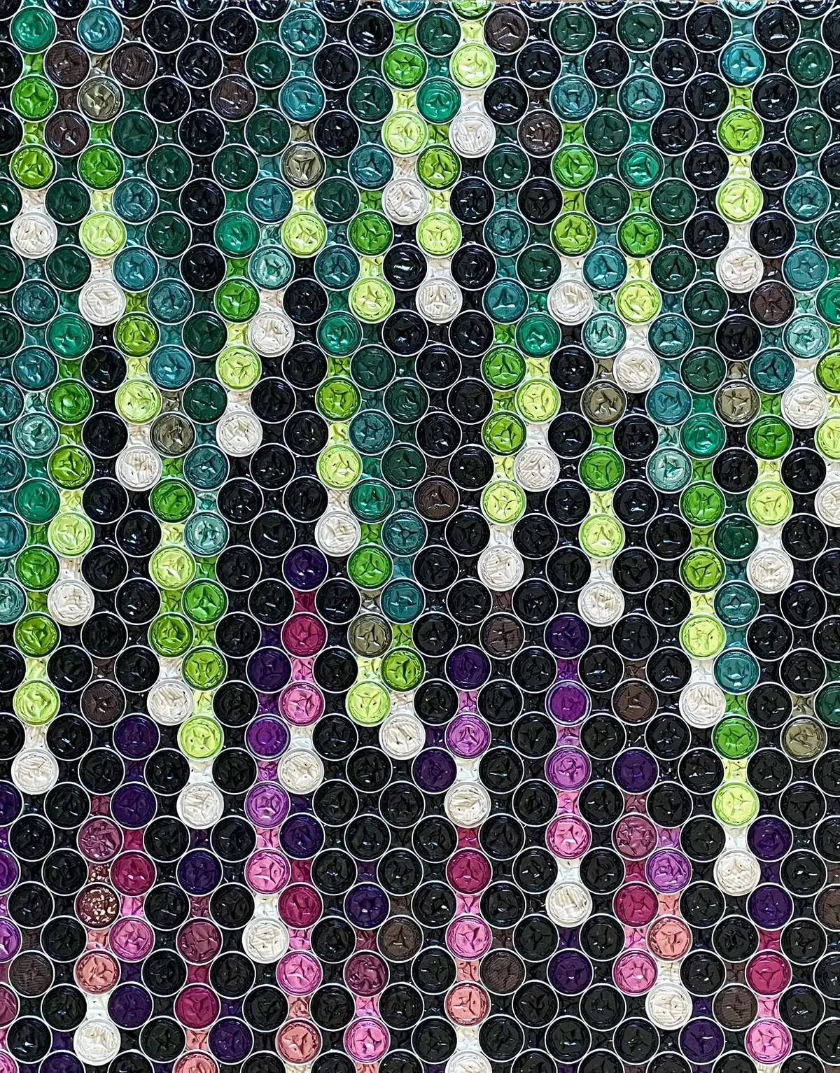 En adoptant une approche basée sur l’upcycling (surcyclage), Jérôme COTIN choisit un matériau original et inattendu pour créer ses œuvres : les capsules de café en aluminium.