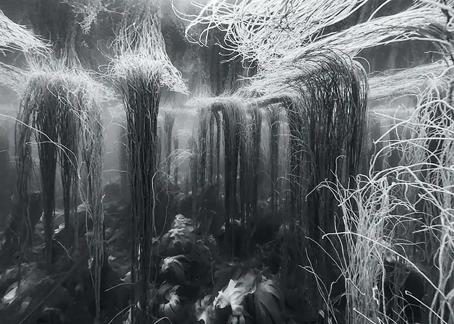 Au fil d'un parcours pluridisciplinaire, la photographie dialogue avec la sculpture, l'installation et la vidéo. On pourra notamment admirer de grands formats photographiques en noir et blanc nous immergeant dans des étendues d'algues vertigineuses, mais aussi des récifs artificiels immergés au Japon, au Portugal, en France et en Espagne.