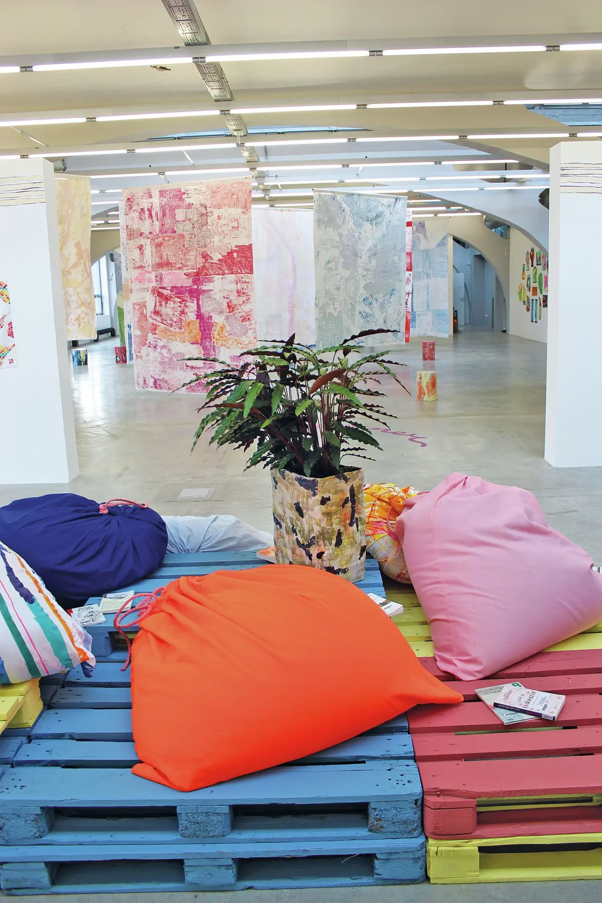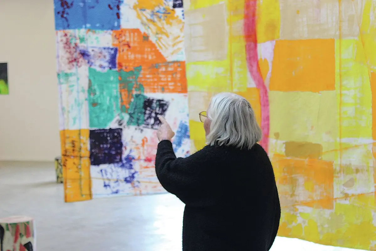 À l'entrée de la Kunsthalle, on peut se poser sur des poufs colorés et admirer les grandes toiles de tissus peintes par Christiane Fath, comme un clin d'œil au passé textile de Mulhouse. Celles-ci tournent et virevoltent au gré des courants d'air et du passage des visiteurs dans la vaste salle d'exposition. On appréciera ou non son style abstrait et bigarré : « Ma peinture, c'est le chaos. Je ressens souvent le besoin d'y incorporer des traits, des lignes, comme pour y remettre un peu d'ordre » souligne l'artiste.