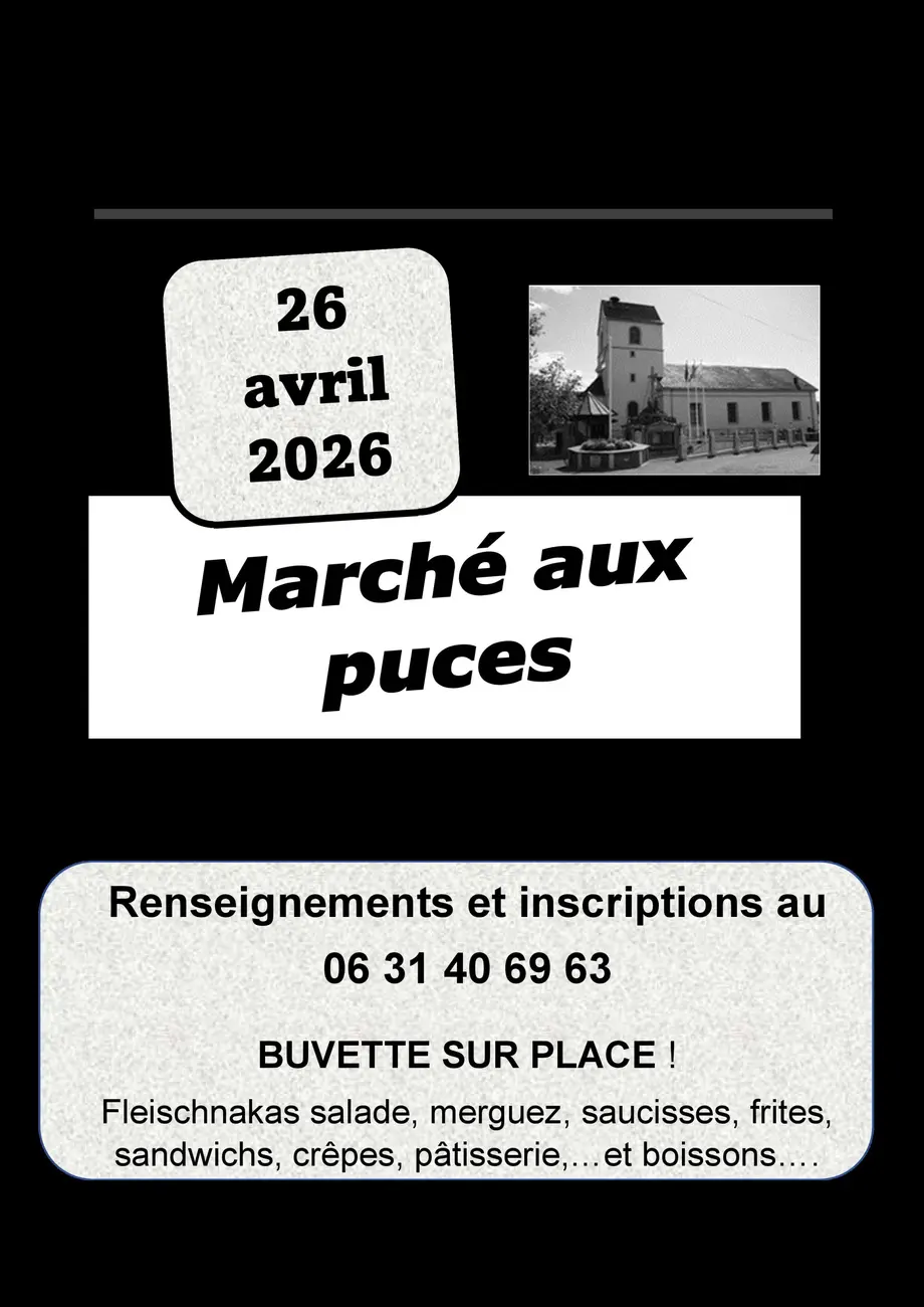 Le Conseil de Fabrique de l'église de Froeningen serait heureux de vous accueillir aux marchés aux puces qui aura lieu dans les rues autour de la mairie du village le dimanche 26 avril 2026, ouverture au public à partir de 7h du matin.