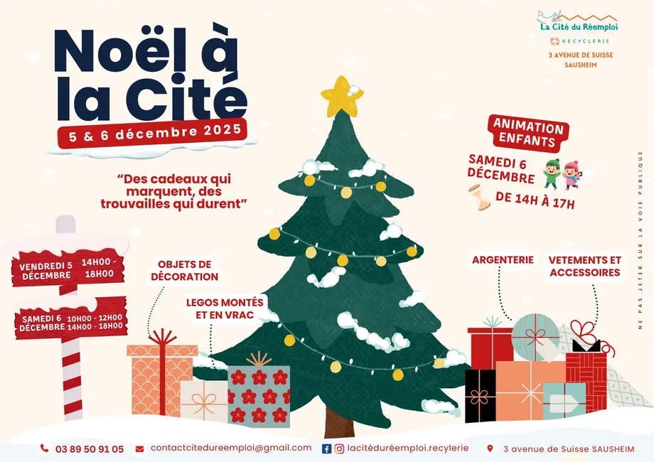 La Cité du Réemploi vous invite à découvrir sa vente spéciale "Noël à la Cité", un rendez-vous solidaire ouvert à toutes et à tous.