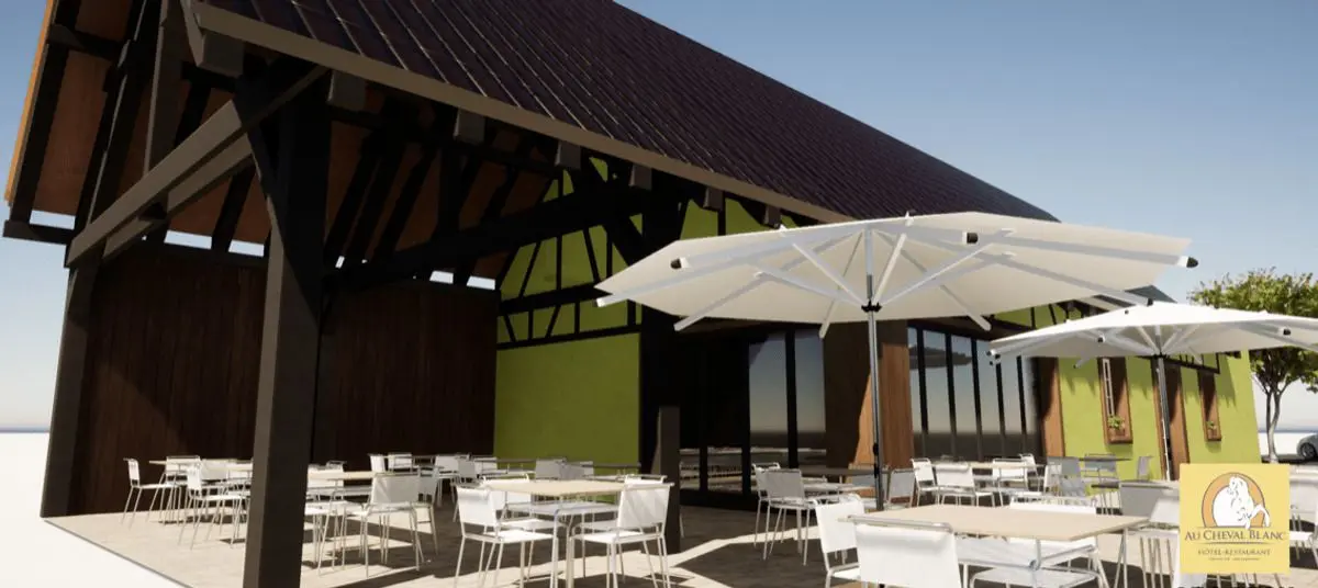 Le style architectural alsacien a été respecté et on retrouvera des colombages sur la façade de cet espace supplémentaire - pour créer une ambiance authentique "façon Cheval Blanc de Baldersheim".