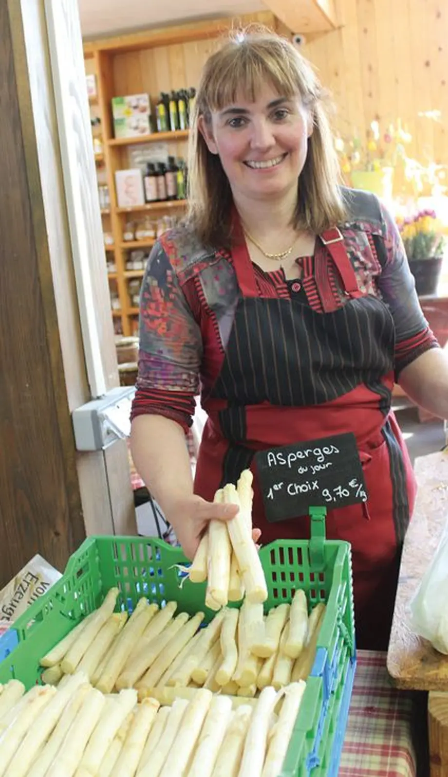 « La vente directe, que ce soit en cueillette libre ou à la boutique permet de maîtriser les prix et de proposer aux gens des fruits et légumes de saison de qualité. Sans être forcément bio, on met en avant le fait de consommer des produits plus sains, et qui n'ont pas fait le tour du monde. En mai, outre les asperges, c'est la saison de la rhubarbe, des épinards, des radis, des oignons blancs... à la boutique, nous proposons aussi du pain fait maison avec du blé moulu chez nous, du beurre, des yaourts et quelques produits comme de la volaille ou des fromages d'exploitations que l'on connaît », explique l'agricultrice, toujours là pour conseiller les non-initiés.