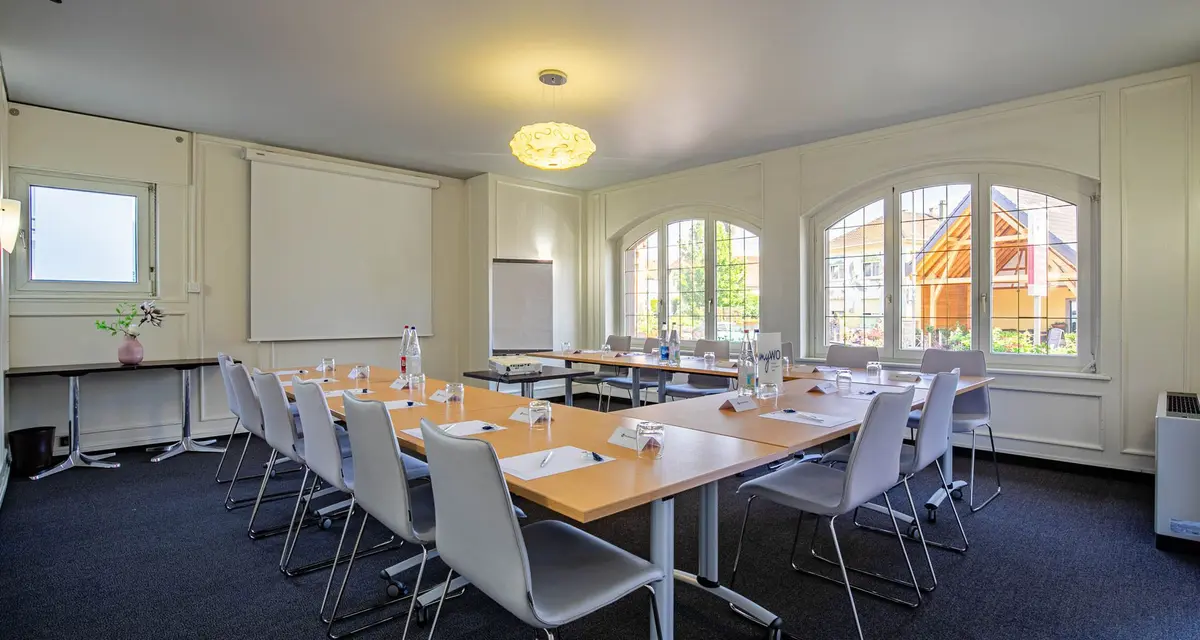 Si vous avez besoin d'un espace plus intime pour vos réunions en petits groupes, la salle Alsace du Best Western Plus - Au Cheval Blanc Mulhouse Nord est faite pour vous. Conçue pour accueillir jusqu'à 12 personnes, elle offre les mêmes équipements modernes pour des réunions efficaces et productives, dans un cadre confortable et propice aux échanges.