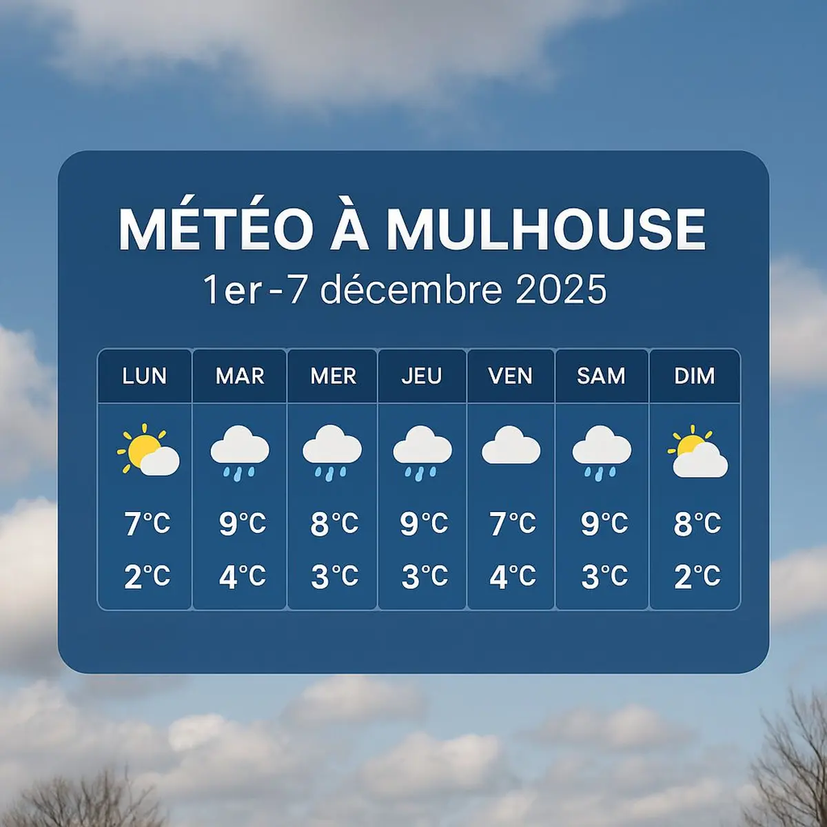 La première semaine de décembre s’annonce contrastée à Mulhouse, entre journées pluvieuses, éclaircies timides et quelques belles opportunités pour profiter de l’extérieur. Pour vous aider à organiser vos sorties, vos déplacements ou vos activités hivernales, voici un point complet sur la météo du 1ᵉʳ au 7 décembre 2025, présentée jour par jour avec températures, tendances et conseils pratiques.