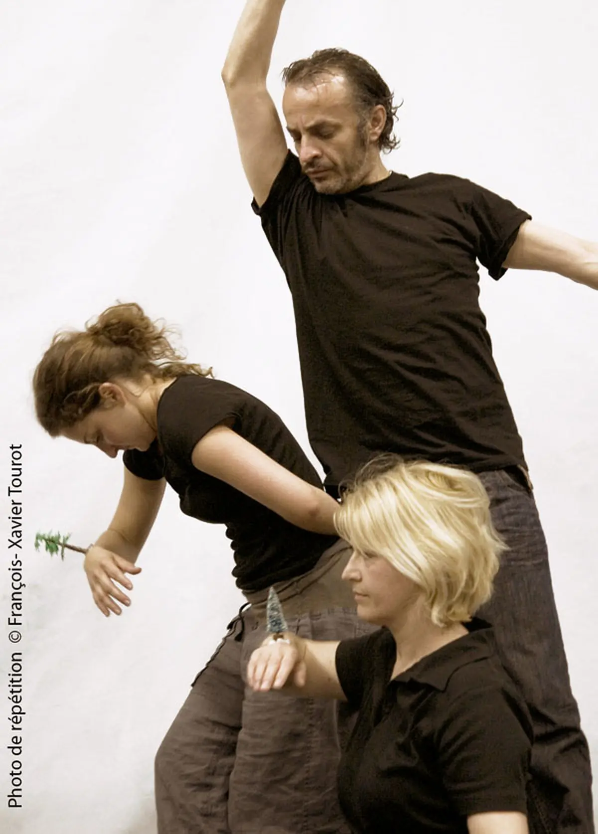 Un homme traverse le plateau, une lune perchée sur son épaule. Une femme se promène avec un couteau planté dans le dos. Ailleurs, un arbre a poussé sur le bras d’une femme... Mladen Materic propulse ses personnages oniriques dans un espace qui évolue au gré de leurs relations de séduction, répulsion, domination ou soumission.