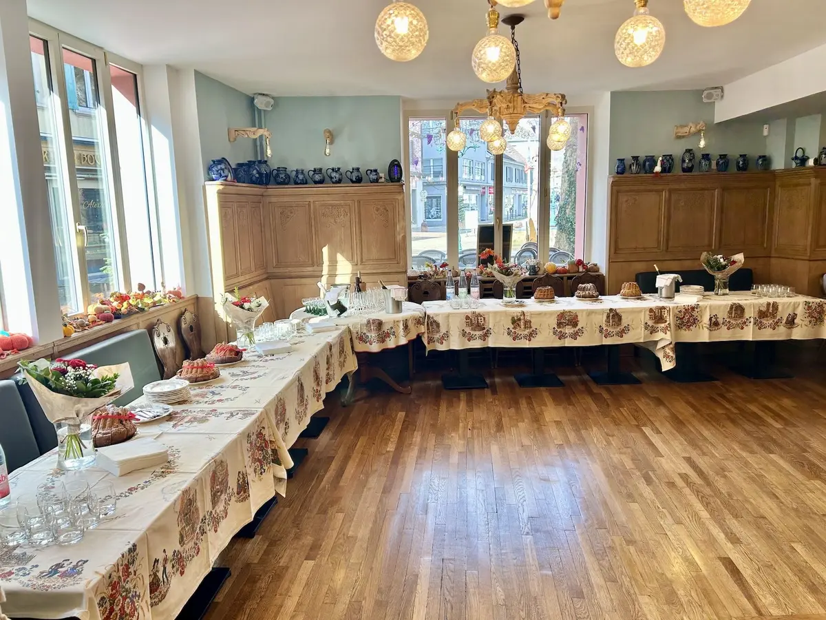 L’Hostellerie Alsacienne propose des menus de groupe conçus sur mesure, en collaboration avec le chef. Les formules peuvent être adaptées aux préférences alimentaires des invités et au type d’événement, qu’il s’agisse d’un repas assis ou d’un buffet.