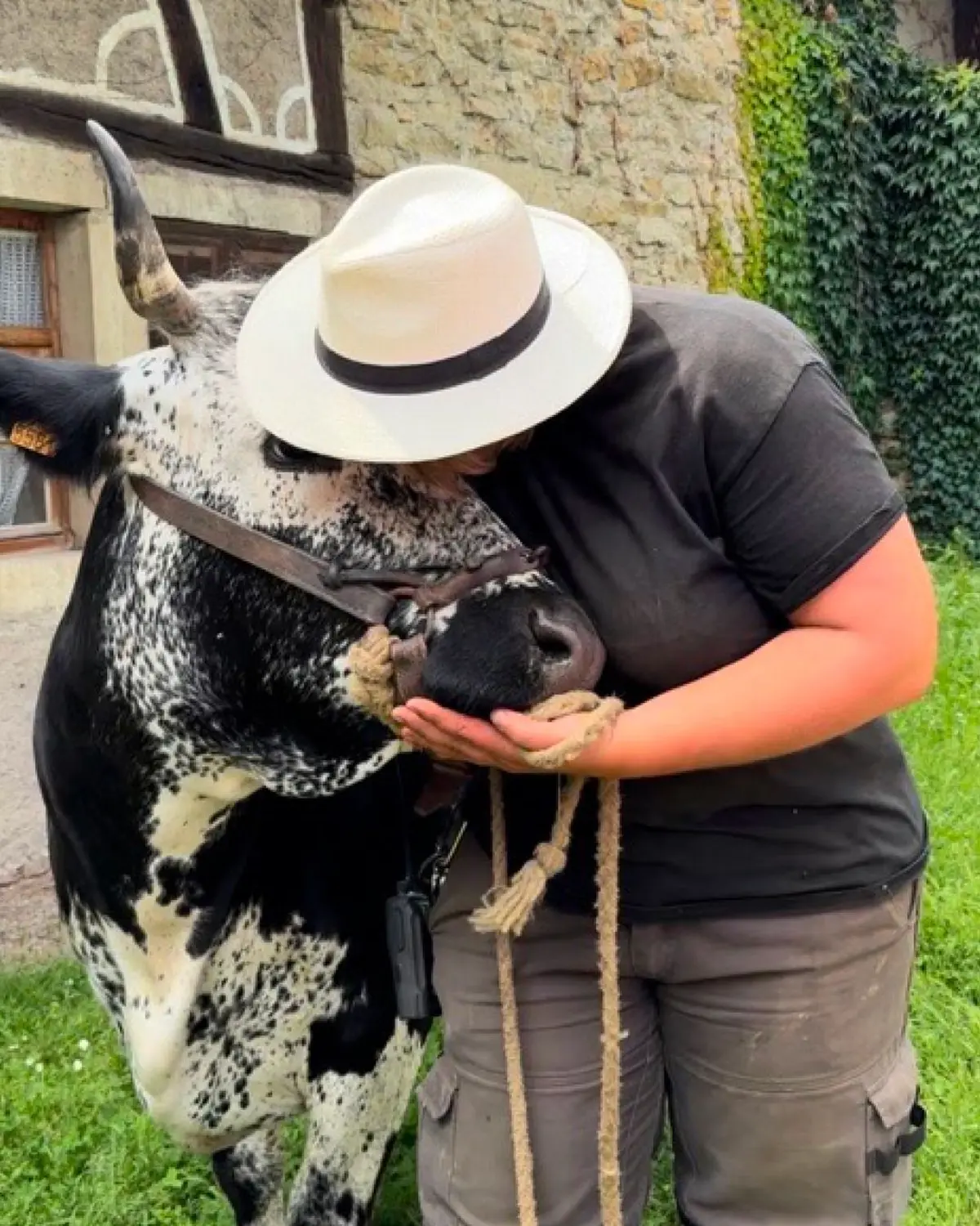 L’élevage des vaches vosgiennes à l’Écomusée est soigneusement encadré par des éleveurs passionnés, comme Alexandra, qui partagent leur savoir-faire avec les visiteurs. Les vaches sont élevées dans un respect total de leur bien-être, en harmonie avec la nature environnante.