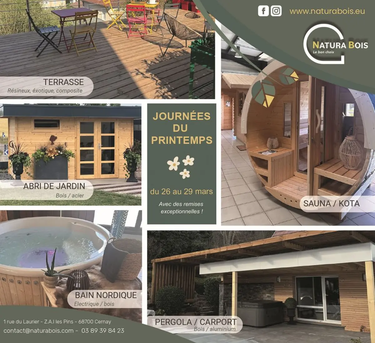 À l'occasion du retour des beaux jours, l'expert de l'aménagement extérieur Natura Bois à Cernay vous ouvre ses portes lors des "Journées du Printemps", quatre journées dédiées à la valorisation de votre jardin et de vos espaces de vie en plein air.