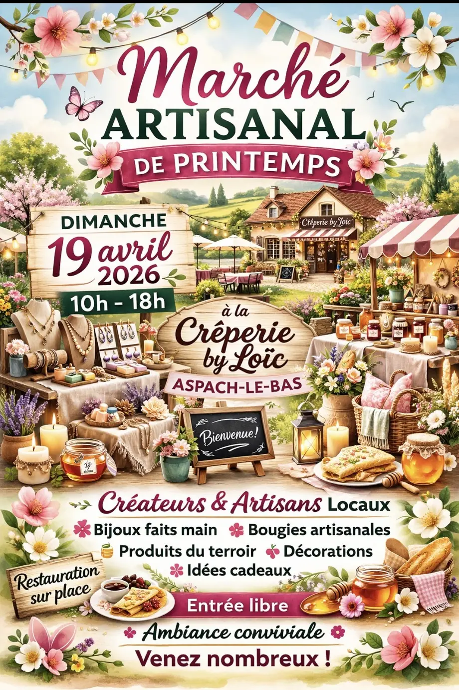 Venez nous retrouver à notre marché du printemps à la crêperie by Loïc à Aspach le bas