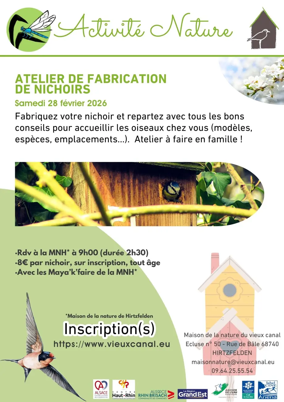 - 8€ par nichoir, sur inscription, tout âge