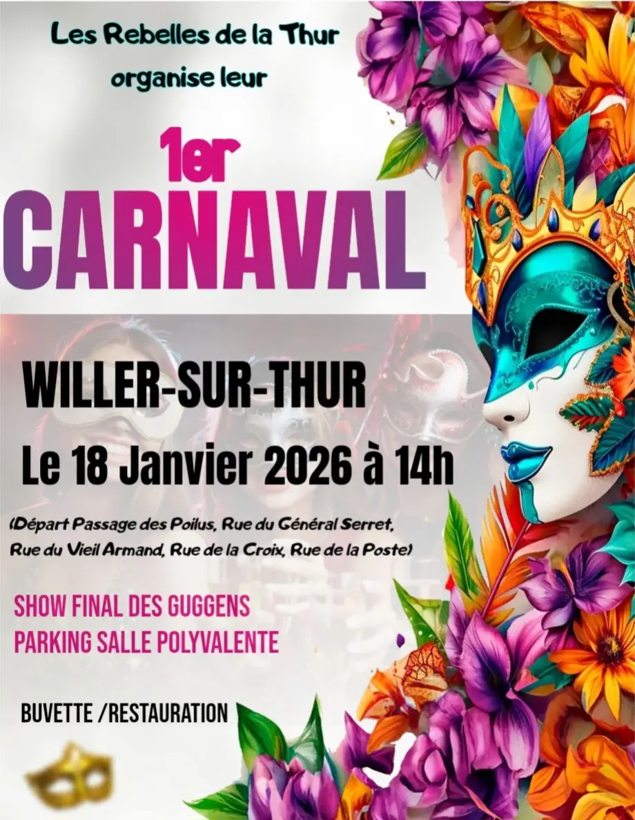 Les Rebelles de la Thur donnent rendez-vous au public pour un grand week-end de carnaval à Willer-sur-Thur, les 17 et 18 janvier 2026, placé sous le signe de la fête, de la musique et de la tradition carnavalesque.