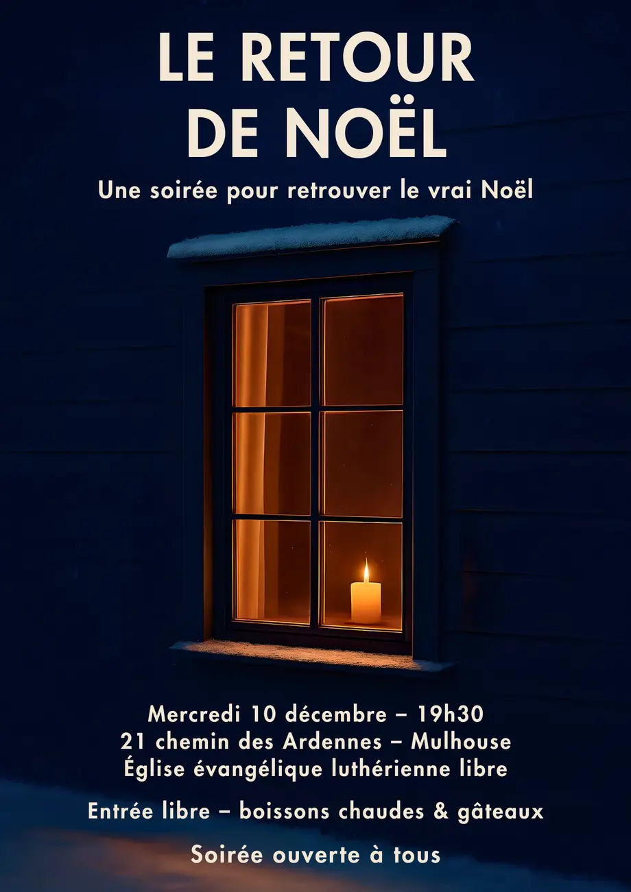 À l’approche de la période des fêtes, l’Église évangélique luthérienne de Mulhouse vous propose une soirée calme et lumineuse pour redécouvrir ensemble le sens profond de Noël.