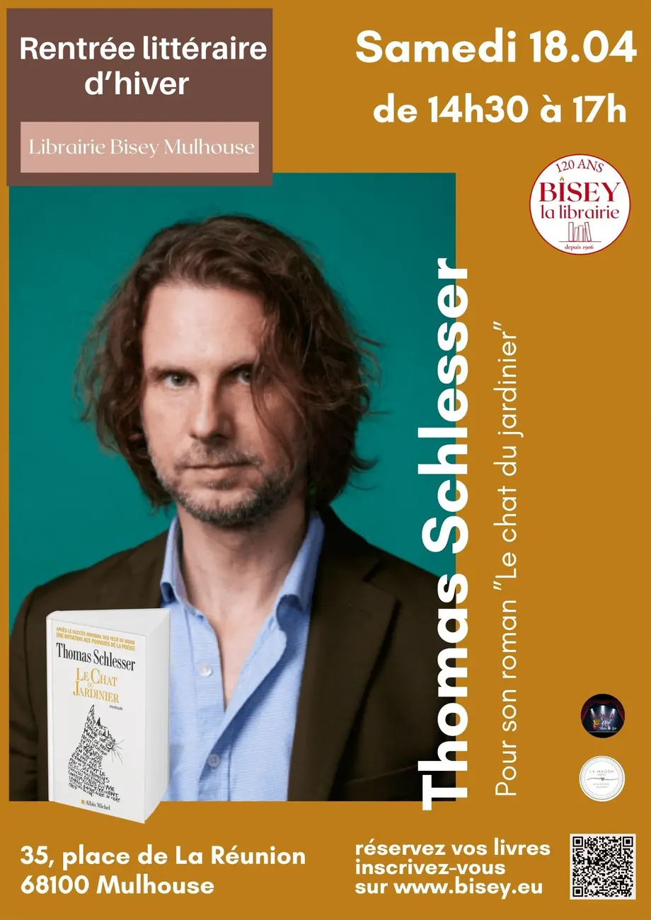 La librairie Bisey a le plaisir d'accueillir Thomas Schlesser à l'occasion de la parution de son dernier livre Le chat du jardinier paru aux éditions Albin Michel en janvier 2026.