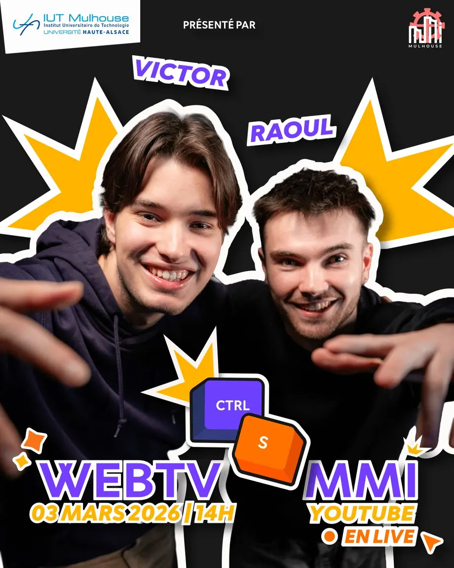 Le mardi 3 mars 2026 à 14 heures, les étudiants de 3ᵉ année du BUT Métiers du Multimédia et de l’Internet (MMI) de l’IUT de Mulhouse organiseront CTRL S, un live consacré à la création numérique.