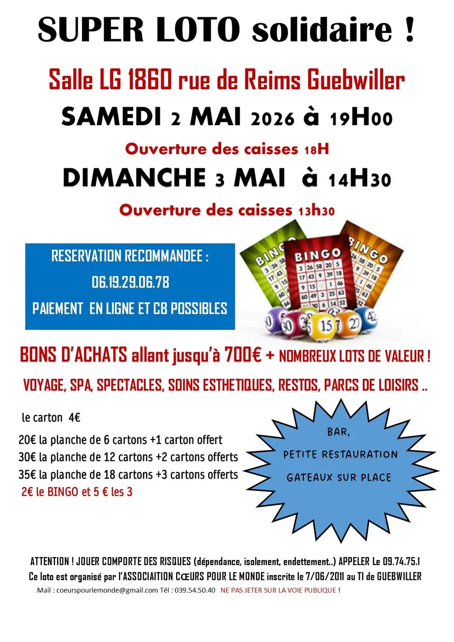 2€ le bingo et 5€ les 3