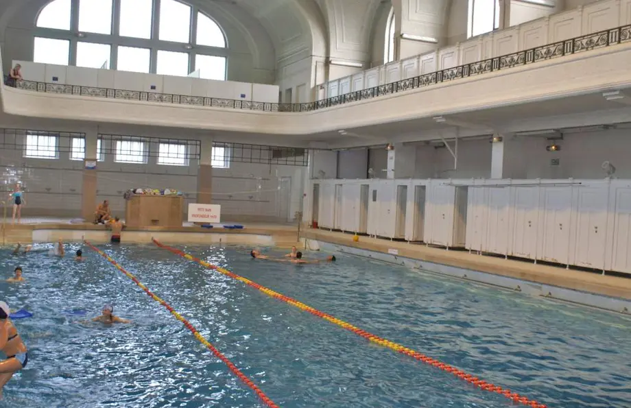 Elle est équipée de deux bassins (25 x 12m et 18 x 9m), des Bains Romains, d'un solarium, de baignoires de relaxation et de cabines de douches et cabines baignoires.