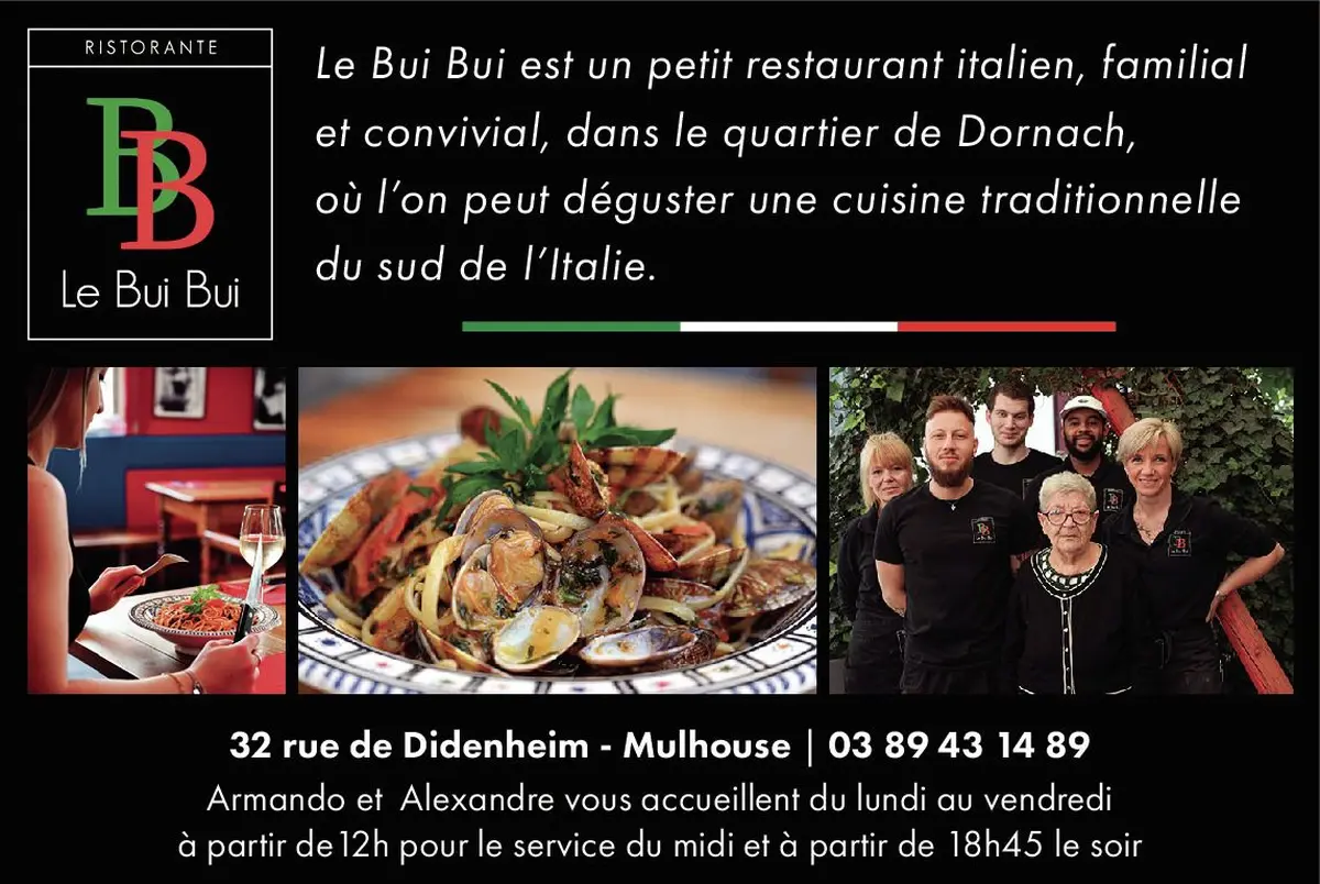 Le Bui Bui à Mulhouse, c'est un restaurant italien, familial et convivial. Il se trouve dans le quartier de Dornach. Une cuisine traditionnelle du sud de l'Italie vous y attend.