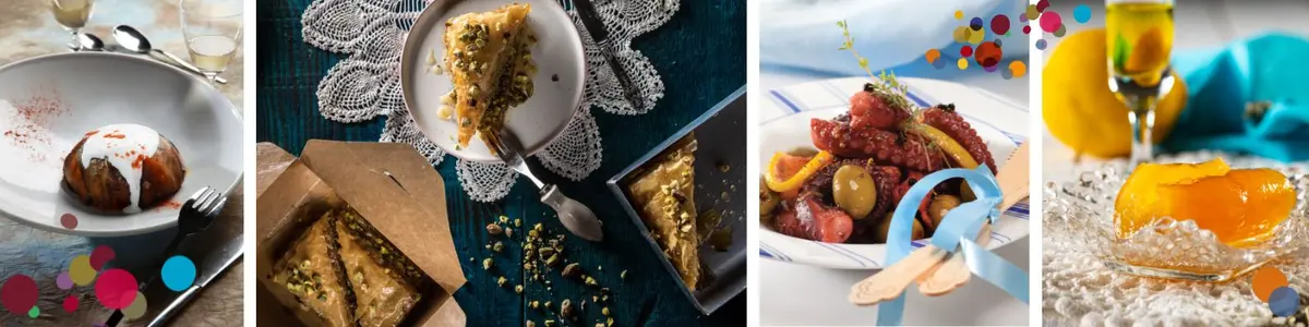 Baklava aux pistaches d'Egine et aux chocolats, crème de masticha de Chios et framboises