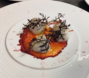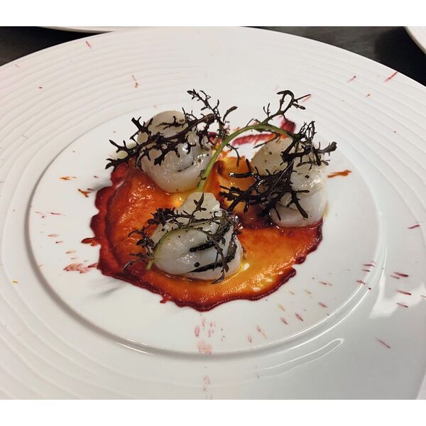Les St-Jacques à la truffe, avec une présentation moderne, à déguster au Petit Paris à Mulhouse
