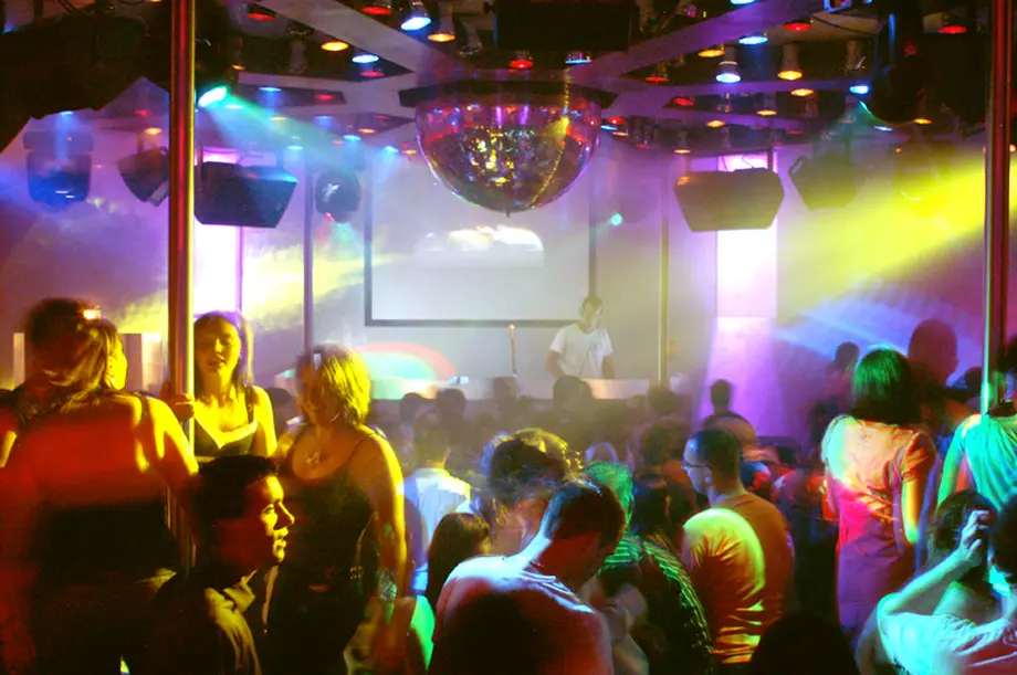 - Au fond il y a la piste de danse sous des jeux de lumières high-tech.