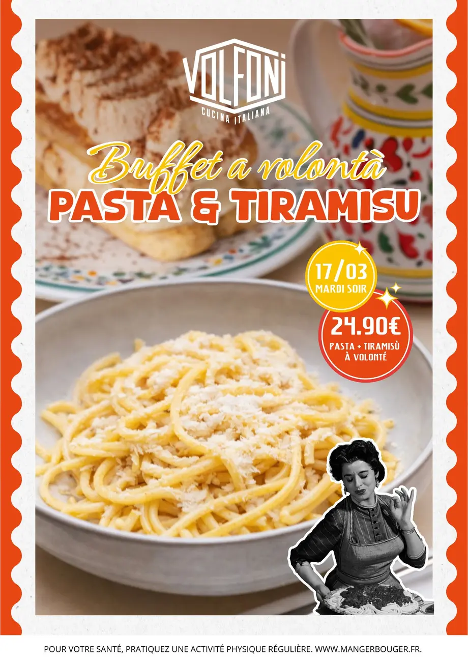 Soirée Pasta & Tiramisu à volonté chez Volfoni