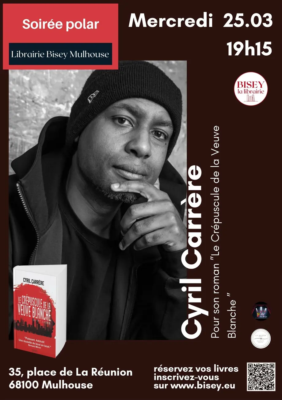 La librairie Bisey a le plaisir d'accueillir Cyril Carrère à l'occasion de la parution de son dernier roman Le Crépuscule de la Veuve Blanche paru en octobre 2025 aux éditions Denoël.