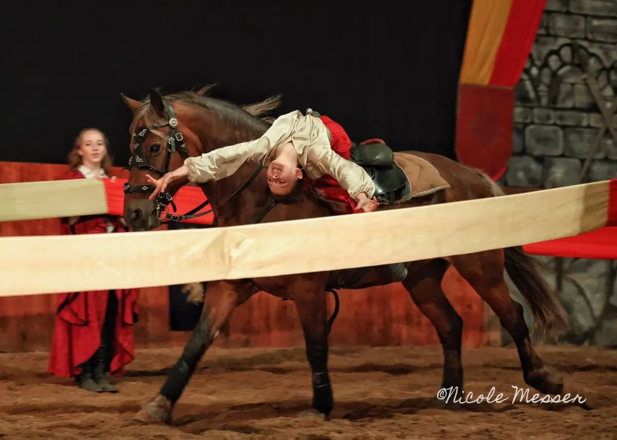 Pour cette toute nouvelle création, la troupe met l’accent sur le spectaculaire : un grand tournoi médiéval, un impressionnant numéro de pyrotechnie réunissant une vingtaine d’artistes, ainsi qu’un numéro de travail en liberté.