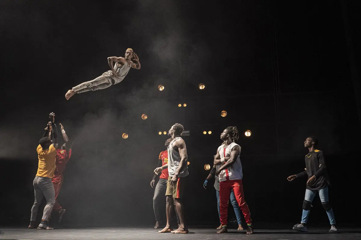 Ils·elles sont treize, comme un porte-bonheur. Enfants de la rue devenu·es enfants de la balle, ils·elles viennent de Guinée et de la diaspora. Yé, qui signifie « l’eau » en soussou, est une bataille qu’ils·elles livrent à bras le corps au milieu de cadavres de bouteilles en plastique. Revisitant les figures du cirque africain (main à main, pyramides humaines, danses de masques…), qu’il conjugue avec les écritures du cirque contemporain, Circus Baobab dégage une énergie collective et joyeuse. En filigrane, le spectacle interroge notre monde en mutation, l’urgence climatique, la perte de repères, la remise en question de la réalité. Résultats d’un geste toujours collectif, les chorégraphies aériennes, les figures acrobatiques, portés et lancés, nous invitent à construire ensemble un monde soucieux de l’autre et de la nature. Le spectacle reflète ainsi les valeurs fondatrices du projet Circus Baobab, qui se veut solidaire et citoyen, en proposant notamment des programmes d’accompagnement à destination de la jeunesse. Voilà un spectacle d’une poésie vitale.