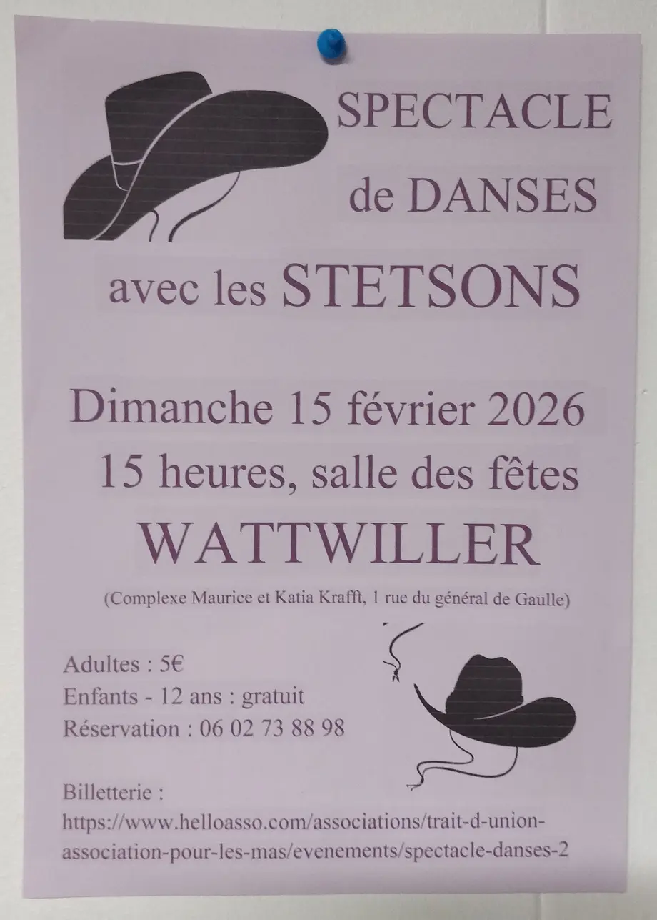 Les STETSONS COUNTRYLINEDANCE seront sur la scène du Complexe Maurice et Katia Krafft de Wattwiller et présenteront 3 démonstrations de danse. Pour les accros à la musique country ce sera l'occasion de revoir leurs vedettes et amis.