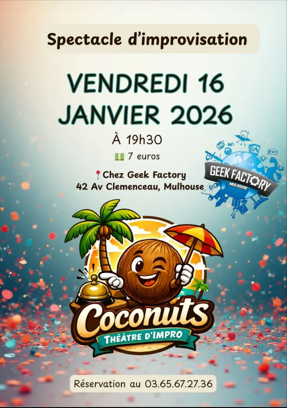 Chez Geek Factory nous vous proposons une soirée spéciale grâce au Coconuts théâtre d'impro.