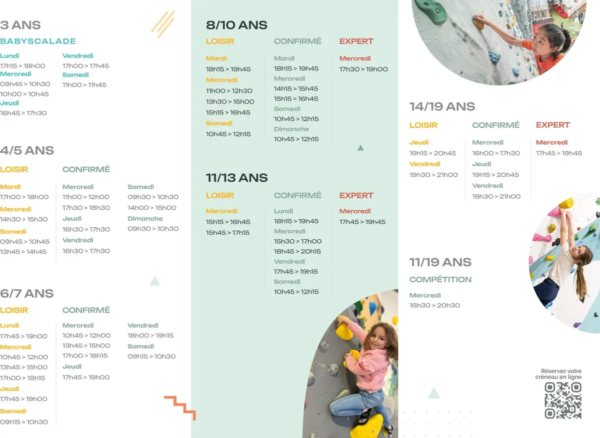 Les créneaux des cours d'escalade pour enfants (2025-2026)