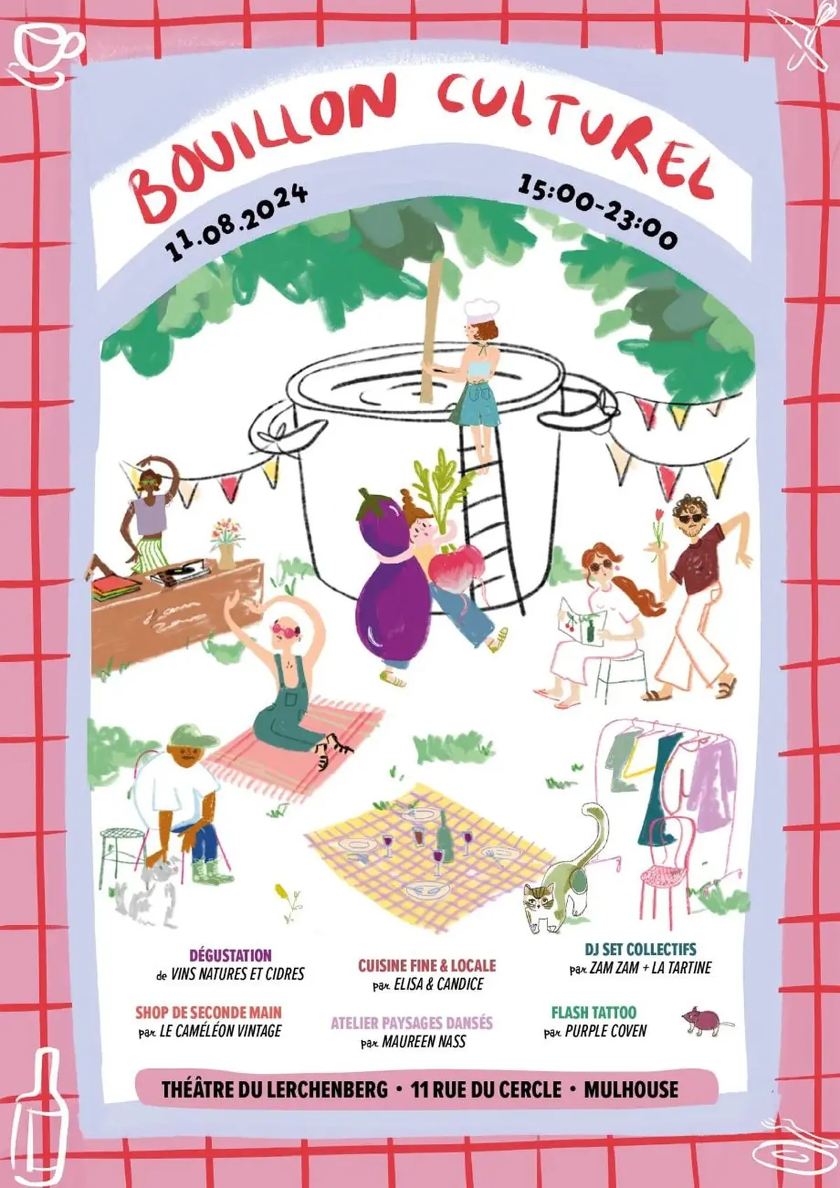 Le Bouillon Culturel - Pt.1 prend ses quartiers à Mulhouse ce dimanche 11 août, offrant un melting-pot d’expressions artistiques. Ce festival est un véritable carrefour de la créativité, où se mêlent expositions d’art contemporain, performances musicales et ateliers participatifs. C’est l'occasion unique de découvrir des talents émergents et de s’immerger dans l’effervescence culturelle de Mulhouse. Ne manquez pas cet événement qui promet d'éveiller vos sens et d'enrichir votre week-end d'une touche artistique !