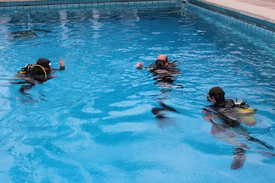 Pour passer le niveau 1, il faut compter entre 8 à 12 séances. Avant de se jeter à l’eau, il faut acquérir quelques connaissances théoriques : la loi des pressions, les dangers du milieu marin comme les poissons urticants, limiter son impact sur le milieu naturel, les règles de sécurité, etc. On apprend ensuite à être autonome avec son matériel : il faut savoir s’équiper ou se déséquiper tout seul, gérer son stock d’air ou pouvoir nettoyer son matériel. Toute une série d’exercice vont vous permettre de plonger en toute sécurité : technique d’immersion, de remontée, de stabilisation dans l’eau, maîtrise de la respiration, apporter de l’air à un camarade, vidage de masque sous l’eau… Sans oublier la communication sous l’eau : vous apprendrez les rudiments pour signaler si tout va bien ou au contraire s’il y a un problème. A la piscine de l’Illberg, une fosse de 5 mètres permet déjà de se familiariser avec tous ces gestes et réflexes à avoir. Le club se rend jusqu’à Dijon parfois où il existe une fosse de 20 mètres.