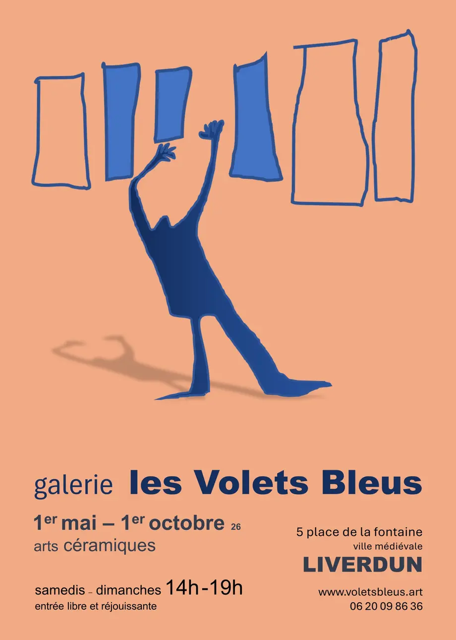 Galerie d’arts, expos & de Bavardages céramiques, LES VOLETS BLEUS ouvrent leurs battants en ville médiévale chaque année du 1er mai au 1er octobre