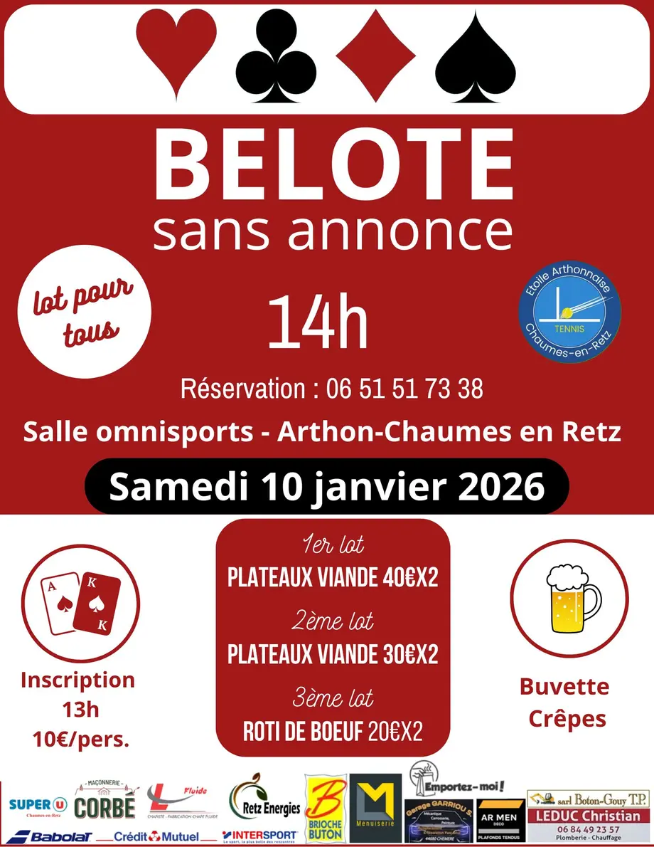 Samedi 10 janvier de 13 h 30 à 18 h, salle omnisports, rue du Stade, Arthon-en-Retz, Chaumes-en-Retz. Tarif 10€ par personne.