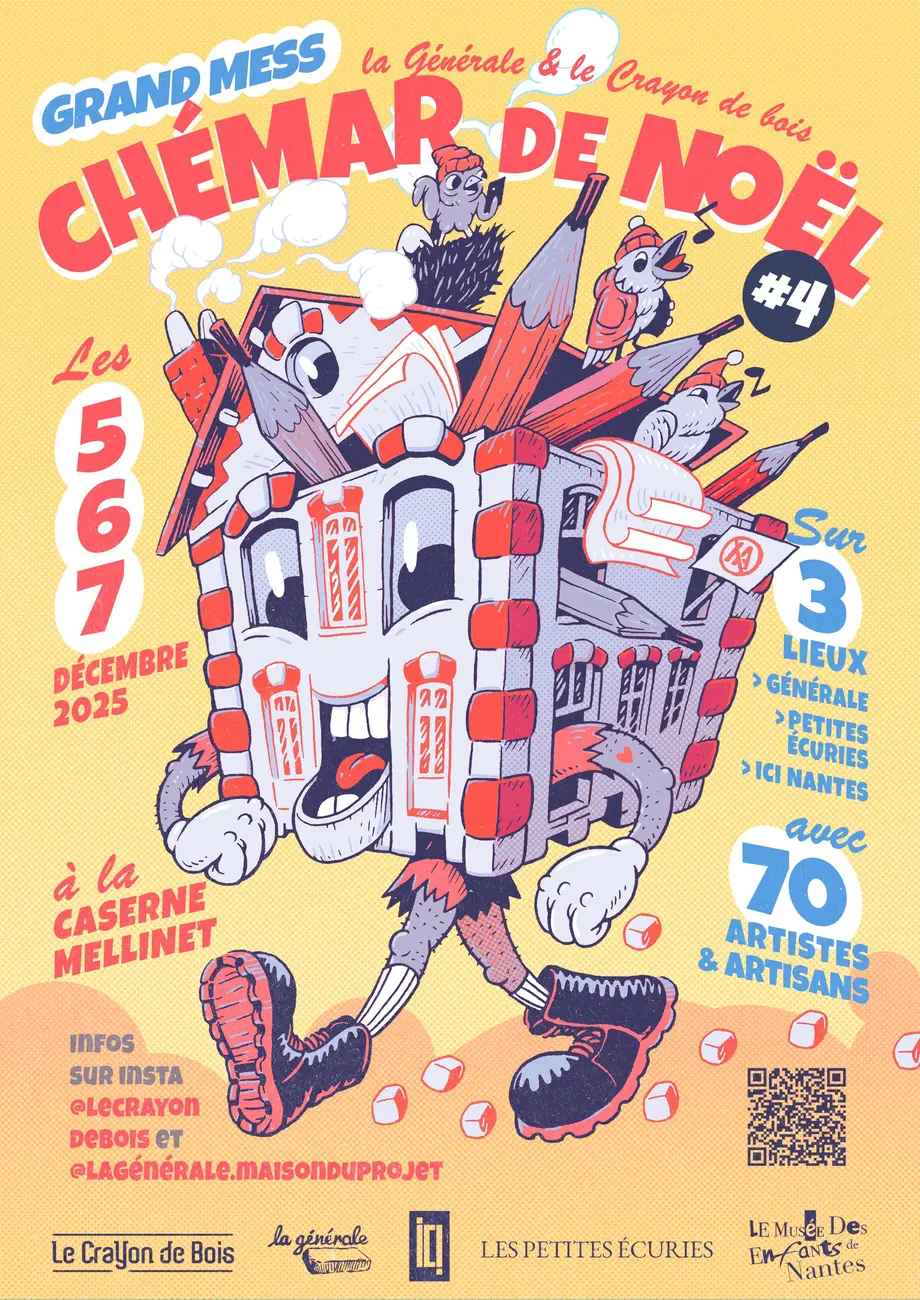 L'association Le Crayon de Bois, en collaboration avec La Generale, ICI Nantes et Les Petites Ecuries, a le plaisir d'annoncer la 4e edition du CHEMAR DE NOEL, qui se tiendra les 5, 6 et 7 decembre 2025 dans le quartier Mellinet.